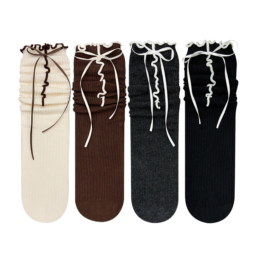 [Banana Kids] BIG RANA Frill Long Ribbon Crew Socks (Adults & Kids)