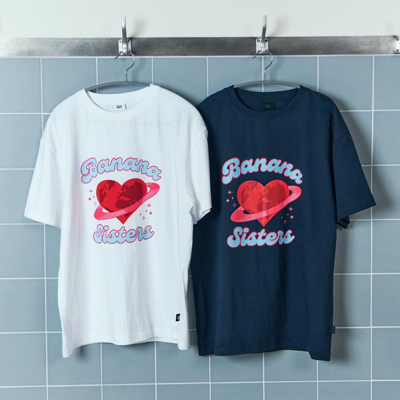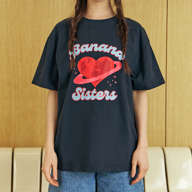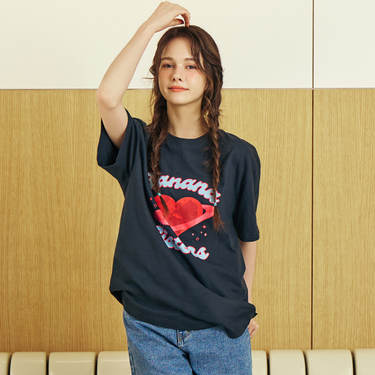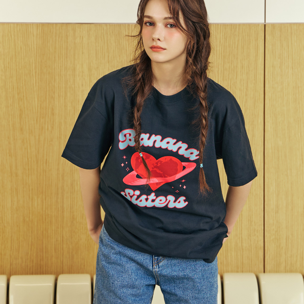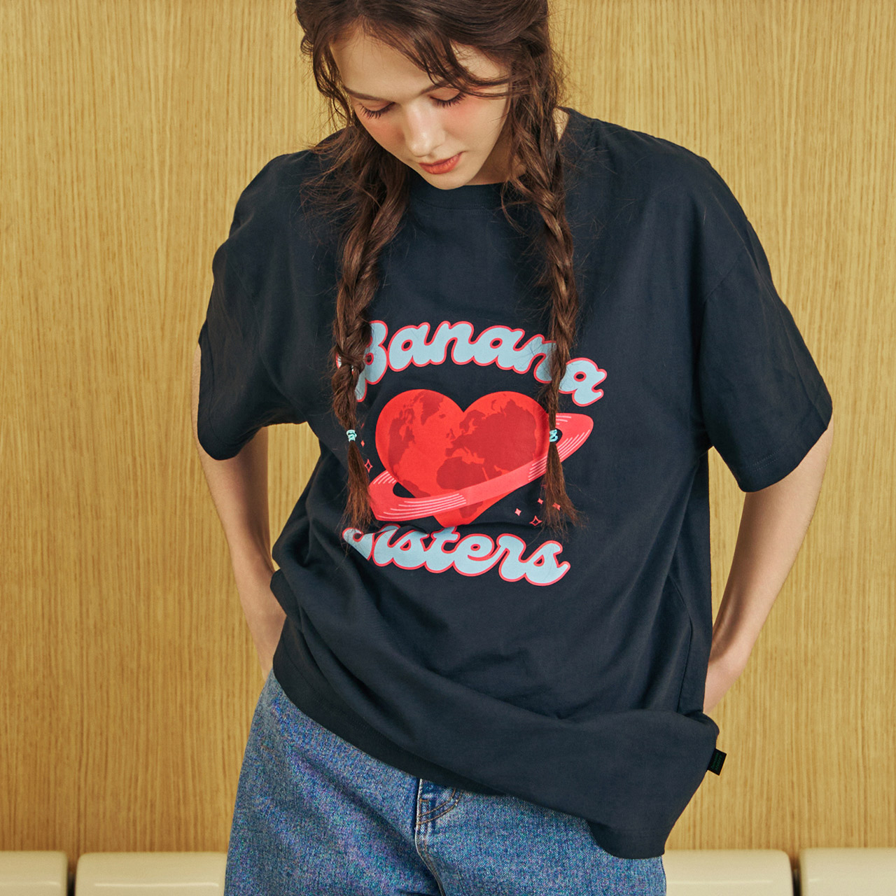 [Banana Sisters] HEART PLANET Oversized T-shirt Navy