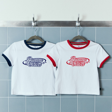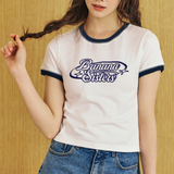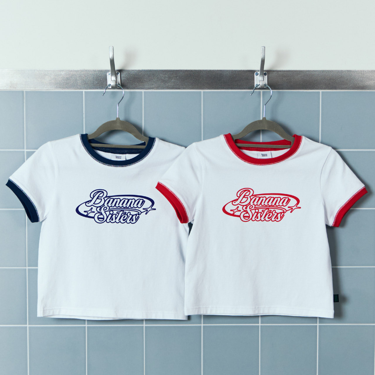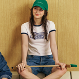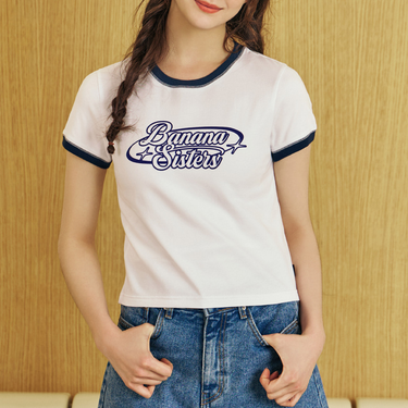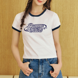 [Banana Sisters] COLOR BLOCK Ringer Cropped Short Sleeved T-shirt Navy